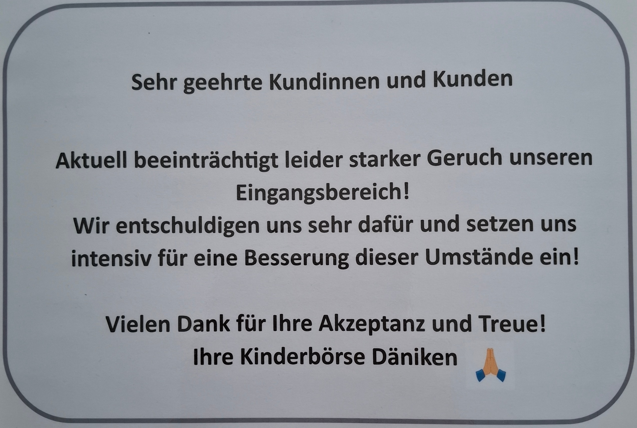 Es ist untersagt, irgendwelche Waren außerhalb der Öffnungszeiten vor dem Börseneingang zu deponieren/entsorgen(Videoüberwachung)!